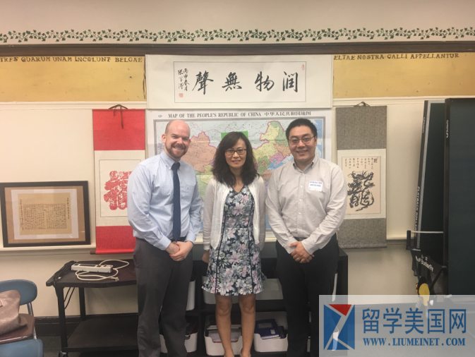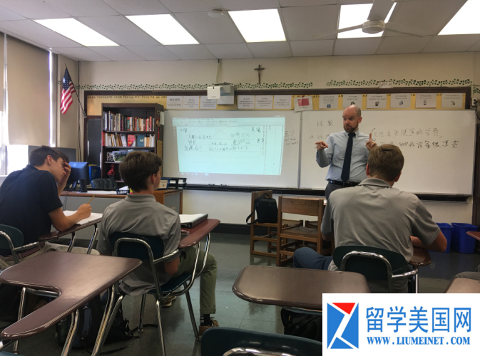 塞顿霍尔大学预备学校开设中文课程,负责招生的Michael老师教中文,他曾在中国贵州工作过,对中国文化非常热爱。他带我们听了一堂他的中文课,这堂课主要讲中国和美国的比较,同学们课堂气氛很高涨。我分别问5名美国学生为什么选择中文课程,他们说非常感兴趣和喜欢中国文化。去年Michael老师带美国学生去中国上海参观交流了,访问了上海的一所中学。学校会在10月3日为中国学生庆祝中秋节。