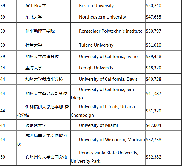 以上是2018美国大学排名前50费用一览表,希望为想要申请美国大学的同学提供参考。