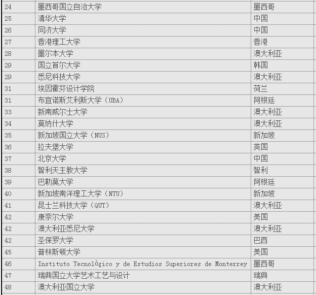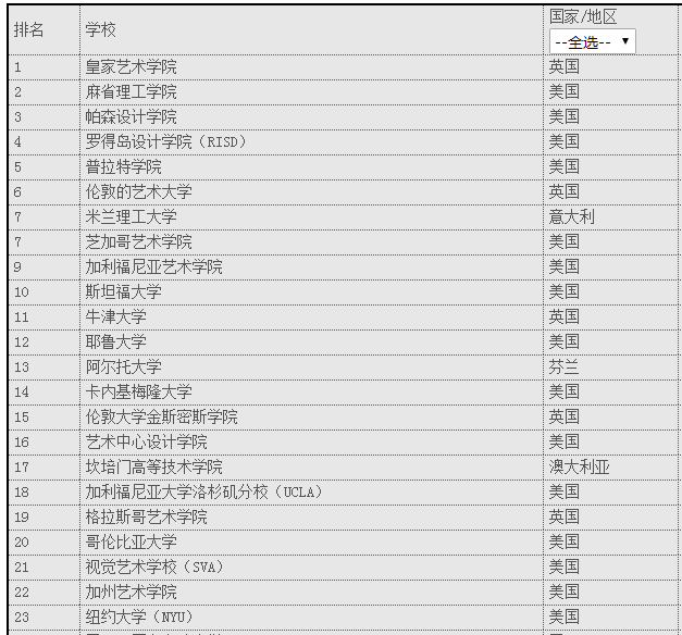 这份排名是QS官网统计出来的,从学术水平、师资力量、学校环境等很多方面综合选评,希望给喜欢艺术的你,作为一个参考!