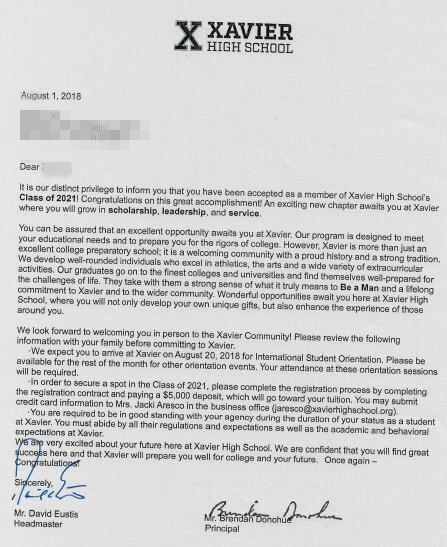 成功案例:X同学申请泽维尔高中 Xavier High School