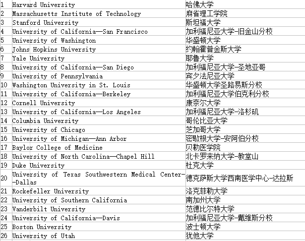 2019年US News美国大学生物学与遗传学专业排名又出来了,毫无疑问,哈佛大学、麻省理工学院和斯坦福大学这3大名校排名前三。