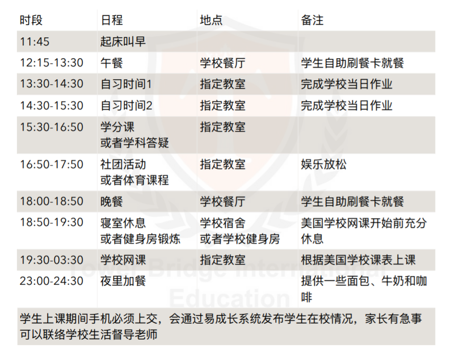 美国学校提供在线直播课的学生作息时间表(样本参考),每个学⽣会因学校⽹课时间不同,有专属《作息时间表》。
