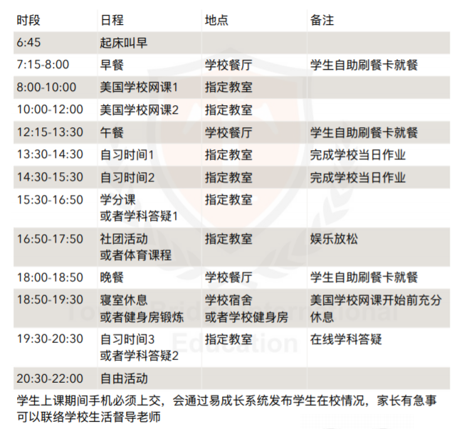通过有效的督导体系帮助学生管理时间,并提供丰富的美高辅助培优课程及多样的课外活动,让决定留在中国上美国学校网课的学生在中国校园的充分里增进交流,保持良好的学习状态和身心健康。