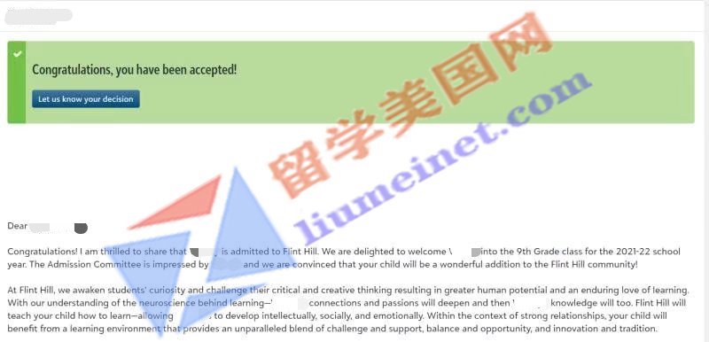 录取捷报 | 恭喜留美网Z同学斩获美国顶尖走读高中弗林特山学校Flint Hill School的录取offer~