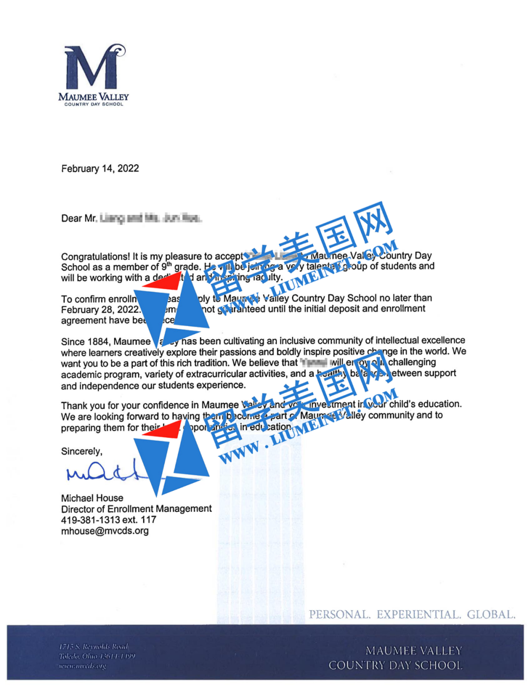 录取捷报-莫米谷中学 Maumee Valley Country Day School