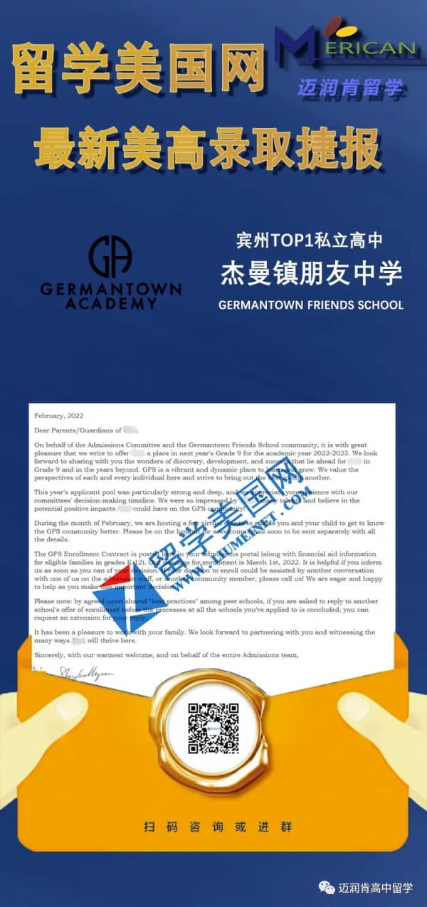 祝贺留美网S同学成功收获Germantown Friends School录取