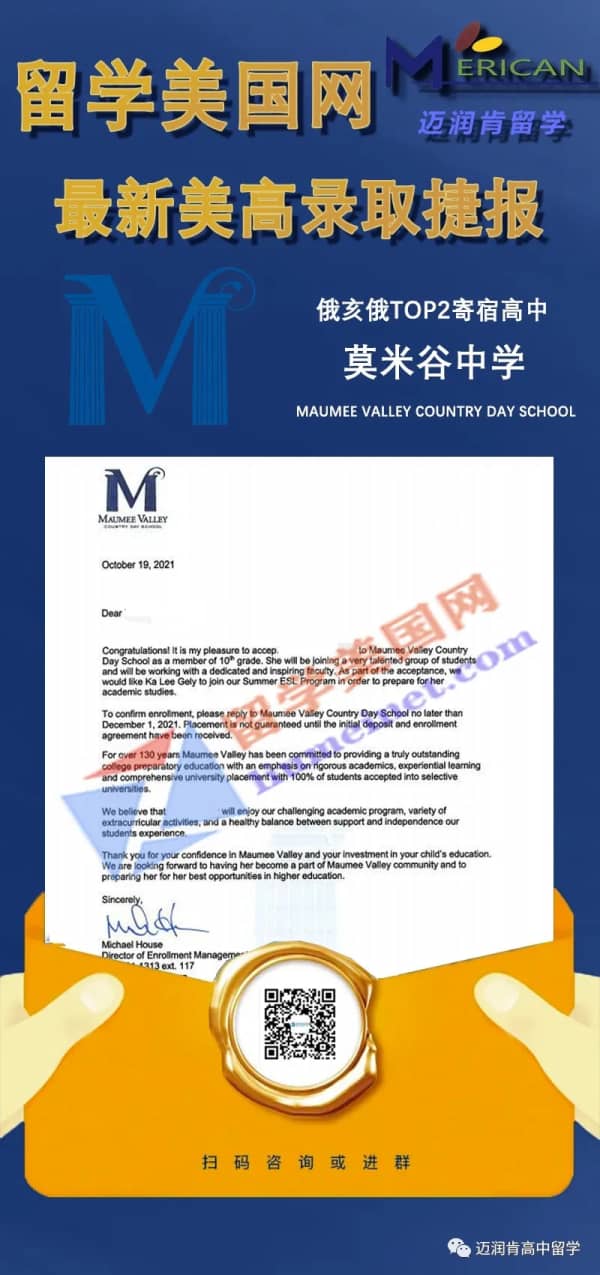 祝贺留美网Z同学成功收获Maumee Valley Country Day School录取