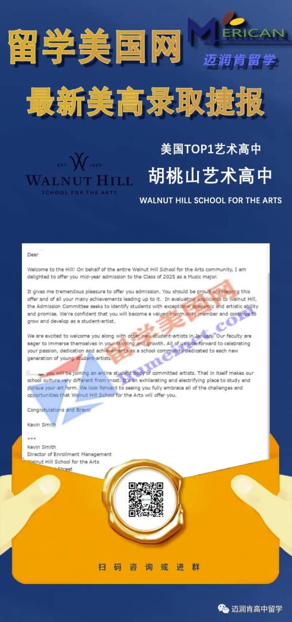 祝贺留美网C同学成功收获Walnut Hill School for the Arts录取