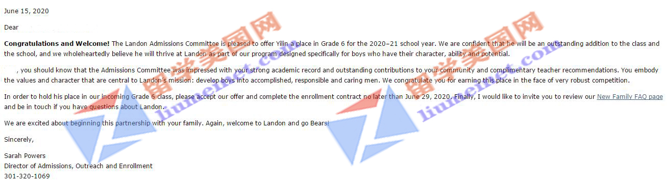 恭喜C同学成功补录到顶尖高中Moses Brown School!这个offer来之不易!凝聚了留美网全体员工的努力和付出!留美网团队用认真的态度,真诚的服务对待每一个孩子!在这里衷心祝愿C同学在美国学业有成!