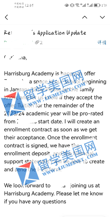 【录取喜报】恭喜留美网Y同学斩获Harrisburg Academy录取offer