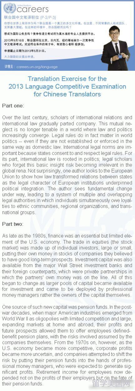 联合国招中文笔译职员,如果你英文了得并且热爱翻译,机会不要错过。