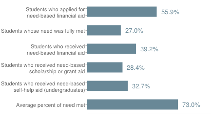 2013-14研究生学费:商学院$26,678,法学院,工学院$25,166,教育学院$25,166