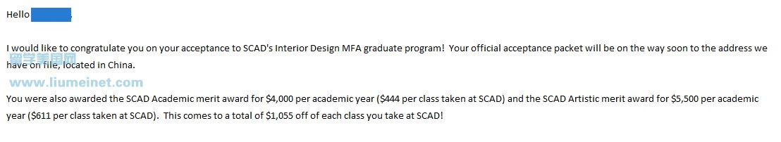 萨凡纳大学室内设计在美国本土属于最受认可的No.1 ,恭喜李同学!我们也相信,在留学美国网与学生的共同努力下,更多的OFFER将纷至沓来!