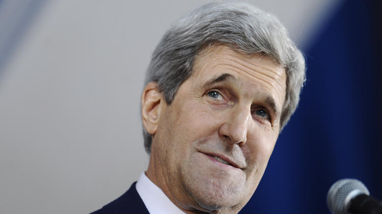 2014年5月18日,星期天。美国国务卿约翰·克里在位于美国康涅狄格州纽黑文市的耶鲁大学发表毕业纪念日演讲。(美联社/杰西卡·希尔拍摄)