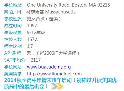 波士顿大学学院由原波士顿大学校长Dr. John Silber和几位学校理事共同创办,专注于9到12年级的高中教育。石老师这里也把它归纳到大学附属中学里了。