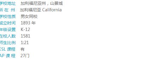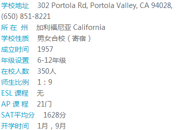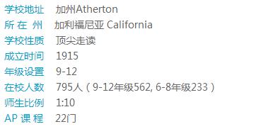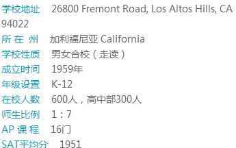 The Harker School学校共有三个校区,每个小区都离得不远,并有交通车课接送往返。学校景色优美,安全、治安佳。该校以严谨校风闻名,大学录取名单两眼。学校小班授课,提供28门AP课程和30多门荣誉课程。许多学生SAT成绩高到可领取大学奖学金,可以自豪的说该校是全面最Top的私立中学之一。学校十分重视科技能力培养。学校拥有最新科技硬件和软件的计算机科学教师、艺术舞蹈练习室、科技中心、体育馆、图书馆等。