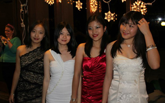 这是学校举办的正装舞会,照片里金头发的小女孩是我的好朋友(左图),她也是罗德岛本地人。在我的学校里,有很多学生都是几代人都在学校完成学业的,在我的同学中,也有很多朋友的哥哥姐姐在高年级,他们也是因为家人在这里才选择在我的学校就读。这是我们参加隆重聚会的打扮,右图是我们学校的几个亚裔学生。