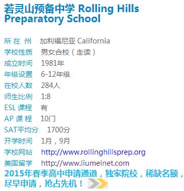 若灵山预备中学 Rolling Hills Preparatory School 学校简介: