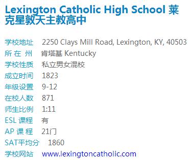 莱克星顿天主教高中是一所历史悠久的男女混合全日制大学预科学校,它是家长最好的教育投资选择。2012 年 204 个毕业生共获得近两千万美金的奖学金,99%的学生进入四年制大 学学习。部分学生覆盖几乎所有美国排名前五十名大学。本校毕业生在 校期间通过选修有 21 个选择的 AP 课程获得的大学学分使他们不到 4 年 完成所有大学课程。本校提供科技学术奖励项目为学生提供与大学合作 机会,在博导教授引导下进行相关领域的科学研究,让学生在数学,科 学,技术领域卓越突出。本校提供的艺术项目让学生的艺术创意才华有 发挥的舞台,该方案包括视觉艺术,戏剧艺术,音乐剧,声乐,器乐乐 队和钢琴。本校还提供免费的课外辅导,为学生提供课堂之外的额外教 学援助,跟踪学生的学习进度,帮助学生发挥自己充分的学术潜力。