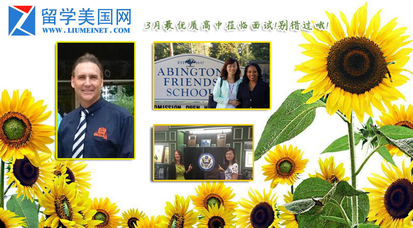 留学美国网提醒:3月份有一大波优质高中来华面试招生,大家密切关注哦!目前已经确认行程的有费城顶尖高中啊秉唐教友会高中,加州橘郡最好女校拉瑞娜高中以及佛罗里达牛校本杰明高中、麻省杰出高中班克诺夫特高中等等。详情欢迎大家来电垂询。