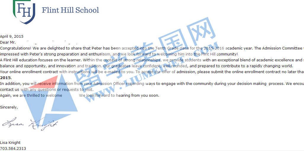 恭喜LYC获DC顶尖高中弗林特山学校补录!美国政要子女多就读的牛校!社区高大上,美国前10顶级富人区之一!值得选择!另外,学霸们需要补录的同学快快行动吧,目前还有同样顶尖的私立高中有稀缺补录名额,相信选择我们,不会让你失望!