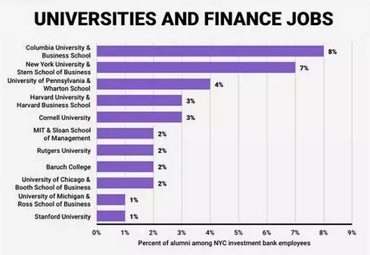 有没有想过在华尔街工作的人都是从哪里毕业的呢?根据Emolument网站对1541位在纽约投资银行任职的人士的调查,有11所大学为华尔街输送了最多人才。