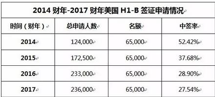 可以看出,从2014财年以来,H1-B中签率持续降低,在配额不变的情况下,想要H-1B工作签证被抽中,可以说“没有最难只有更难”!