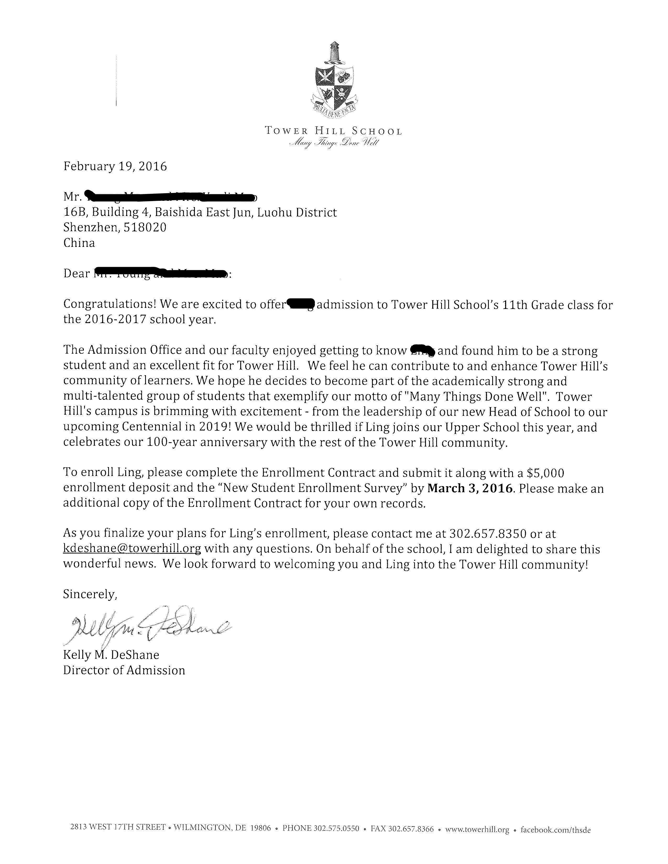 接到牟同学的申请,我们为了选了几所学校,家长很满意。其中塔山更是他们的首选。申请中有很多因素可以影响到最终的结果,其中很重要的有文书,面试和与学校的合作。写文书时,我们综合分析了学生的特点和优势。面试时,我们做了多次针对性面试培训。此外我们还专门为他安排了校园面试。最后还有我们与学校之间的精诚合作作为后盾。经过大家的齐心协力,终于帮助牟同学顺利收获了塔山的录取。家长和学生都非常开心。