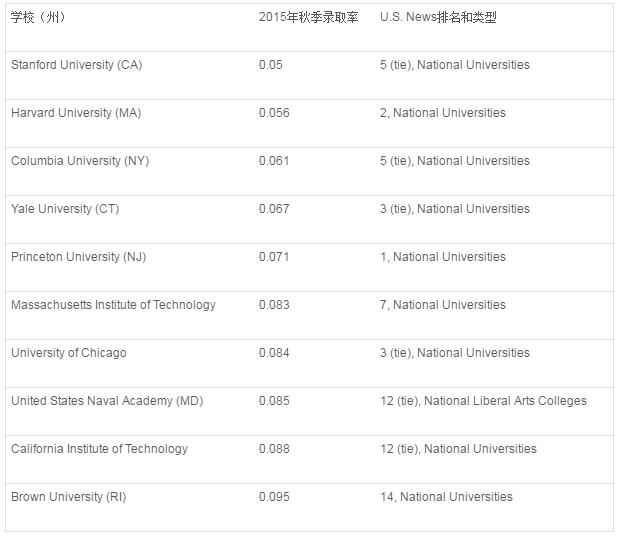 U.S.News数据统计2015年秋季的录取情况,这10所美国大学的录取率最低,都在10%以内。放眼望去都是咱们想进的名校,名校精英扎堆,竞争压力大,可见一斑。斯坦福大学录取率5%,美国顶尖大学,想说爱你不容易,来看看这10所学校: