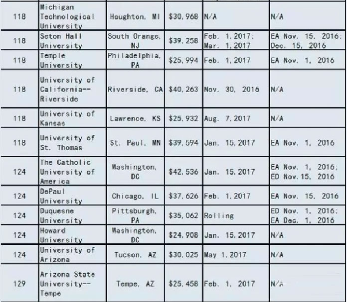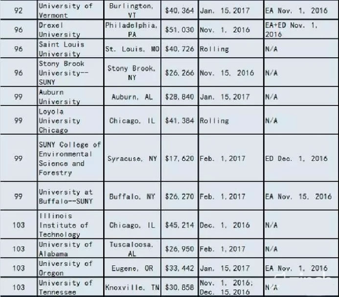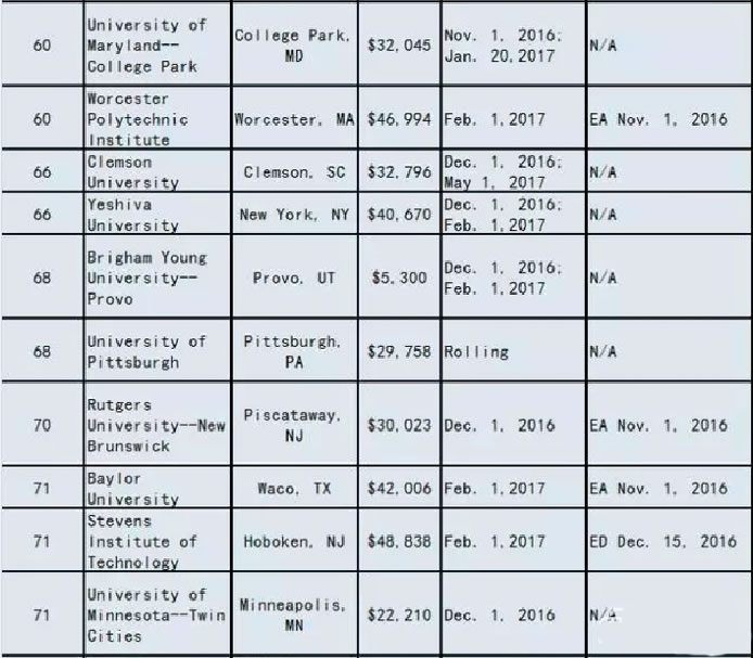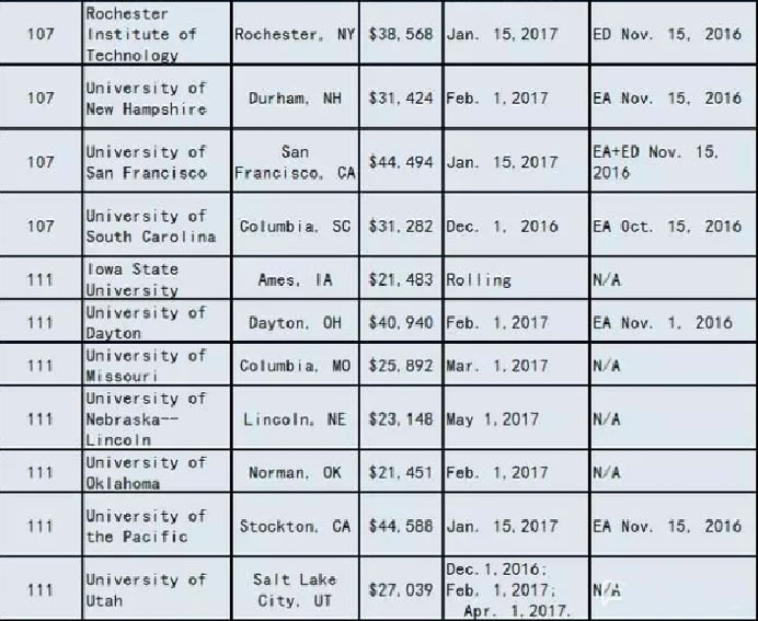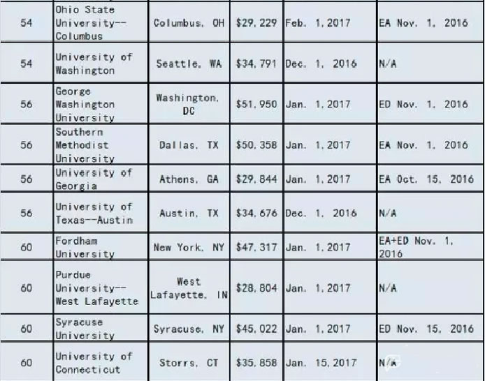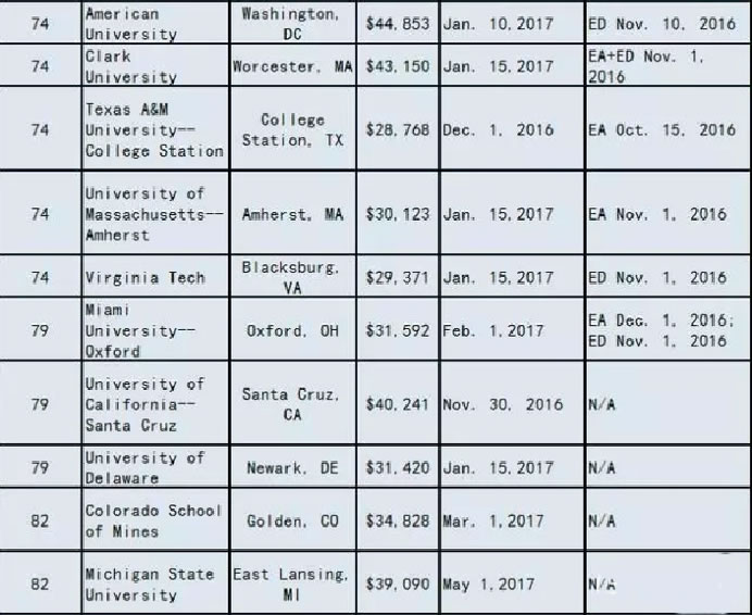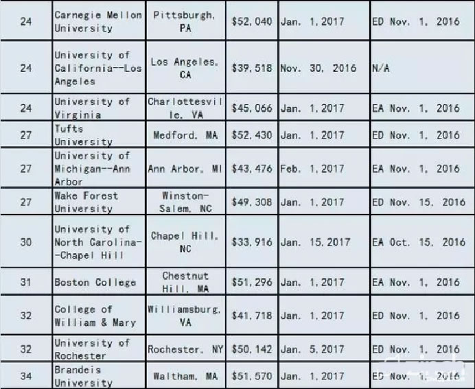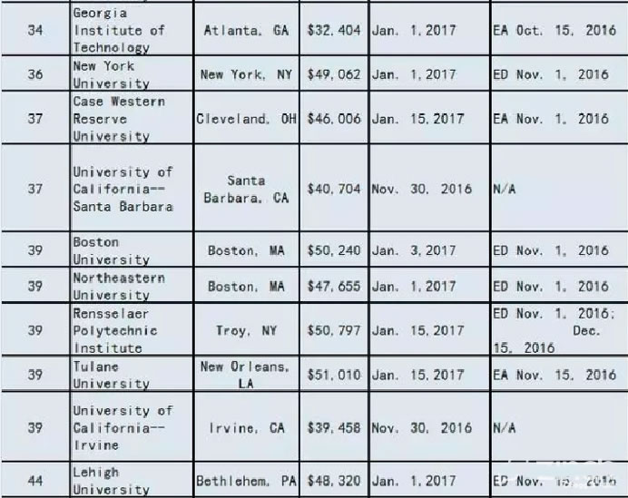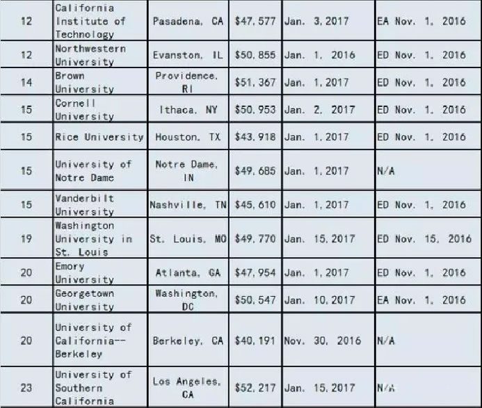2017美国大学ED/EA/REA/RD申请截止时间: