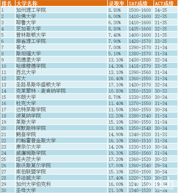 前不久Niche出了美国最佳大学排名TOP100的榜单,现在跟大家分享一下Niche2017年美国最难申请大学TOP100。除了最佳大学排名,Niche还根据录取率、SAT/ACT成绩的高低整理了2017最难申请的美国大学。录取率权重占60%,录取学生的SAT/ACT成绩占40%。根据这份榜单,美国最难申的大学是加州理工学院。哈佛还比加州理工好进些。