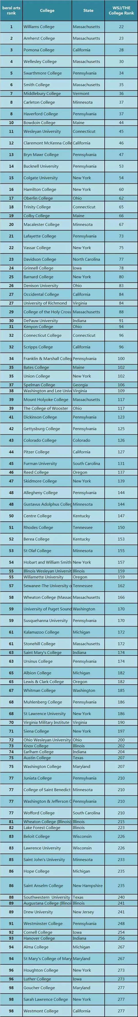 文理学院与其他公立大学一样,对州内和州外学生收取相同的学费,文理学院的学费每年在5万美元以下,本次发布美国文理大学排名的主要目的是解决学生和家长的选校疑惑,帮助学生更加合理的选择正确院校。本次排名在前3名的文理学院为: