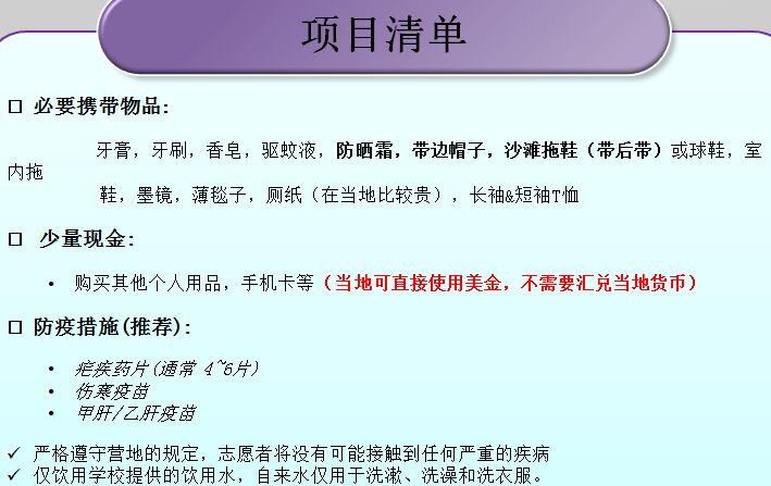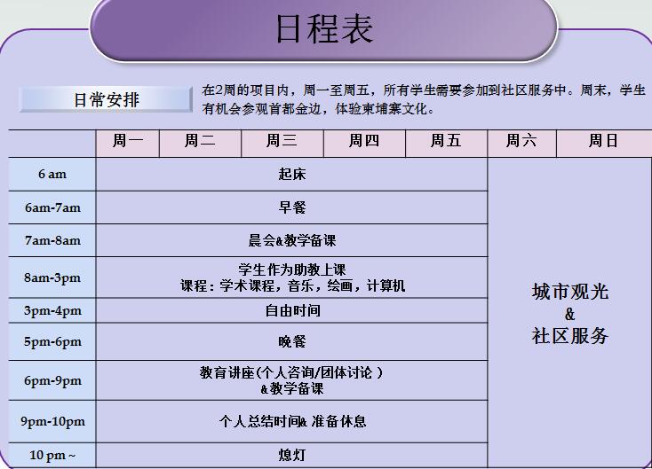项目内容简介 去到柬埔寨当地一所国际学校用英文教授当地小学-中学生不同课程。
