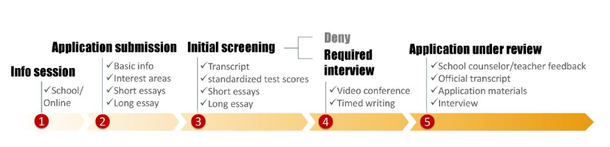 完成申请递交后,需要经过3轮的审核评估。初审中将对申请者的成绩单、标化考试成绩、短文书、长文书等材料进行审核。