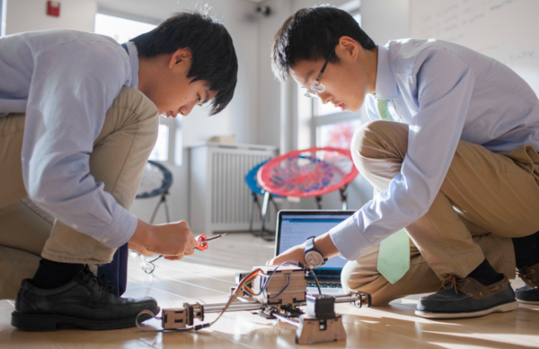 iLab还向学生介绍机器人世界。通过使用Tetrix Max和Ev3系统,男孩们协作构建、编程和指挥机器人。随着机器人从单个部件进化成一个功能单元,学生们欣赏这个过程,并最终庆祝这个结果。