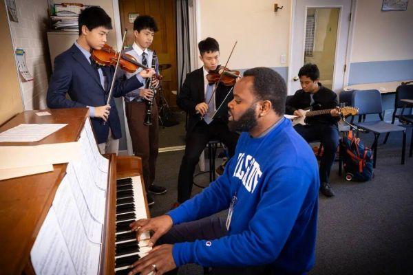 所有的学生都通过每年三个月的音乐学习来发展他们的音乐知识和鉴赏力。课程范围从伟大作曲家的项目到使用车库乐队等程序开发音乐作品。学生亦有机会尝试各种乐器,并可透过个人音乐/声乐课、流行乐队、戏剧及合唱团,进一步发展他们对音乐的兴趣。学生还通过学校的春季戏剧制作,学习和掌握表演、唱歌和舞台制作。