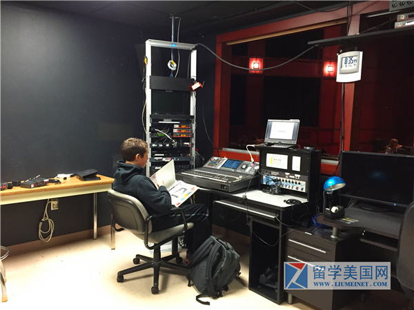 学术方面,今年开设了中文课程及针对中国学生的ESL课程。石老师一到学校,正赶上高中部的三名学生分享去印度旅游的经历和感受,后台的播音全部有学生们自己操作(下图)。学校每年都会组织世界各地去旅游和交换,让学生开阔眼界。
