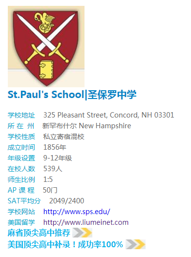 圣保罗中学St. Paul's School学校坐落于俄亥俄州韦斯特维尔市,位于俄亥俄州东北部,社区环境格外优美、安全,学术氛围浓厚,毕业后可直升入蓝带高中圣弗朗西斯德萨勒蓝带高中。学校致力于帮助学生成为自信、自主、持续学习的人。教学成绩十分优秀,教师教学经验丰富,耐心负责。高度重视国际学生,为国际学生开设一对一ESL辅导,上课时间每星期1次到2次,时间是45分钟。开展安全环境项目,保护该学区所有人的安全,包括心理和人身安全,帮助学生提高防范意识,从而学会保护自己。每年学年末进行科学项目的展示,由俄亥俄州立大学福西特中心举办,使学生获得了和本州其他中学同学小组合作活动的机会,同时在模拟国会听证会活动中学习了政府相关知识。