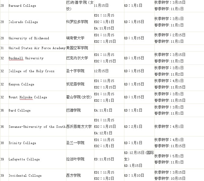现将2013年美国文理学院申请截止时间做以整理,包括提前申请ED/EA截止日期,常规申请RD截止日期以及转学Transfer申请截止日期。友情提示学子们务必在截止日期之前递交申请材料。因为有的大学标明截止时间为截止日当天的早上八点,有的大学标明如果截止日赶上节假日,那么学生应赶在截止日之前的最后一个工作日递交。迟于申请截止日期递交的材料相当于作废。希望可以为申请2014年美国本科文理学院的同学们作为参考。