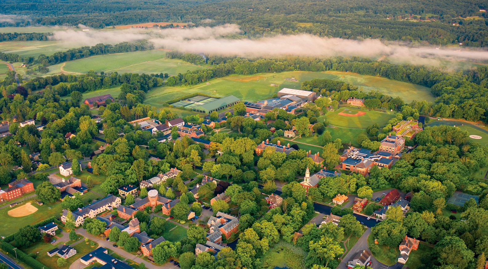 迪尔菲尔德学院(Deerfield Academy)位于美国马萨诸塞州的迪尔菲尔德小镇,这里是一个具有历史气息且风光宜人的地方。小镇距波士顿大约2.5小时车程,拥有便利的交通条件。迪尔菲尔德学院所在的地区不仅风景秀美、环境幽静。作为美高八校联盟的成员和美国最古老的中学之一,迪尔菲尔德学院200多年来始终凭借着高标准的教学、广泛的课外活动和傲人的升学成果被称为美国东部的“小常春藤”学校。