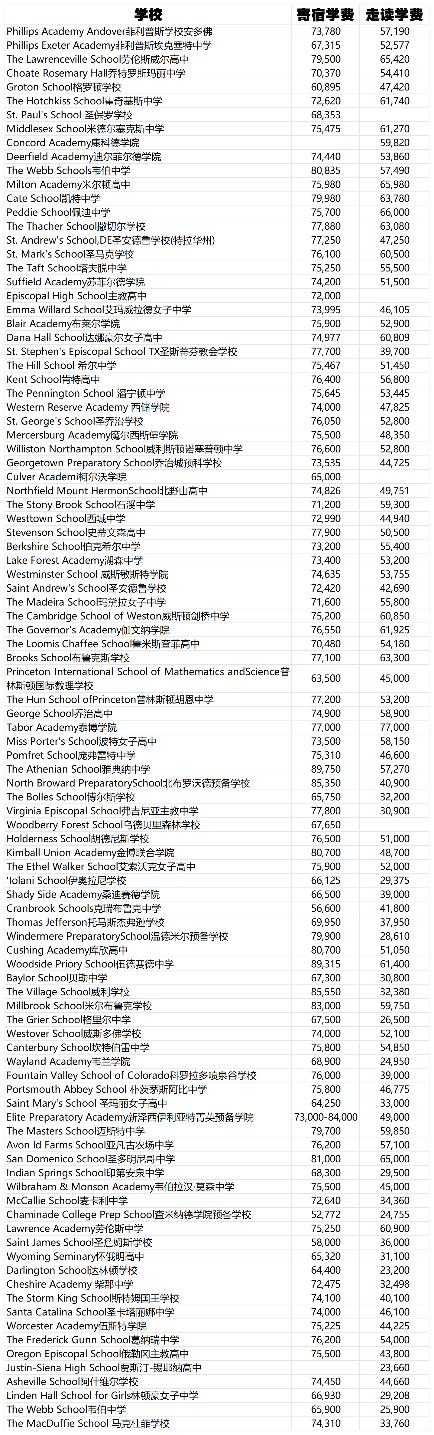 想去美国读寄宿高中,成本究竟有多高?前 100 寄宿高中走读寄宿花费最新数据!