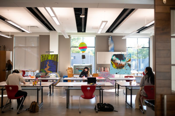 占地 32,000平方英尺的表演艺术中心是校园内最大的设施之一,拥有415个座位的先进表演艺术剧院、多用途的社区和活动空间、教室和协作空间、绘画&陶瓷和平面艺术工作室、暗房和摄影工作室、画廊等等。