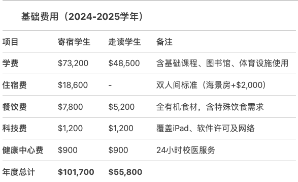 大学双学分课程:$1,500-2,500/门(波士顿大学等合作院校)