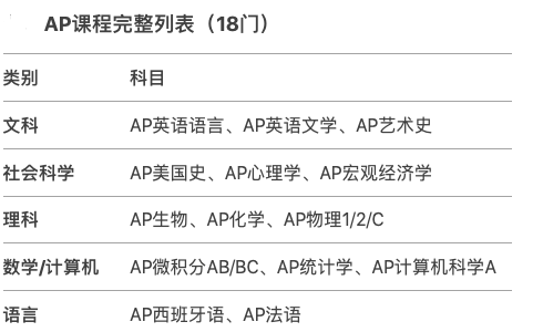 AP课程:AP美国历史、AP欧洲史、AP心理学、AP宏观经济学