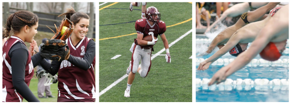 棒球、篮球、划艇、越野/田径、击剑、曲棍球、足球、高尔夫球、棍网球、足球、垒球、游泳和潜水、网球、、排球、水球、摔跤等。