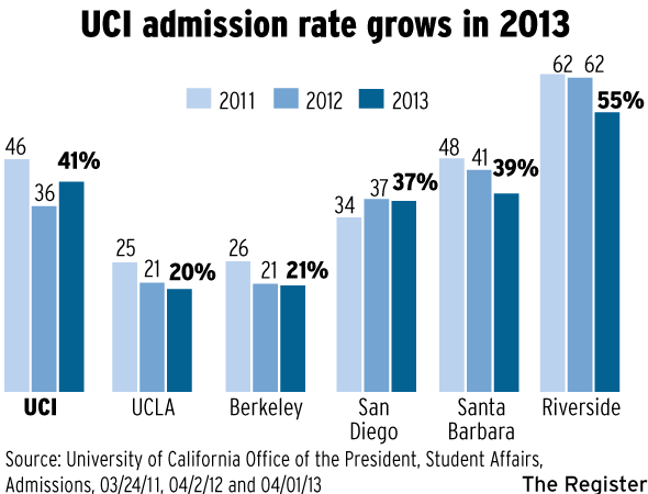 虽然2014年UCI录取统计还没有出来,但是可以告诉所有的学生、家长、留学机构由于UCI今年收到84,000名学生申请,UCI直接录取标准已经大大提高了。