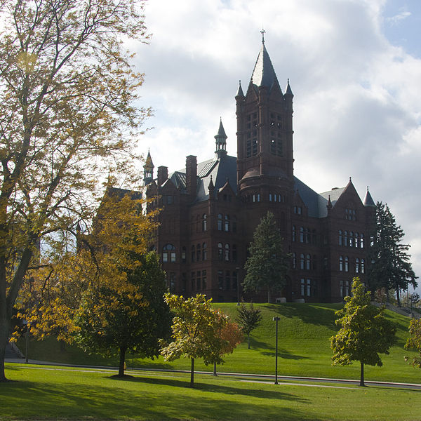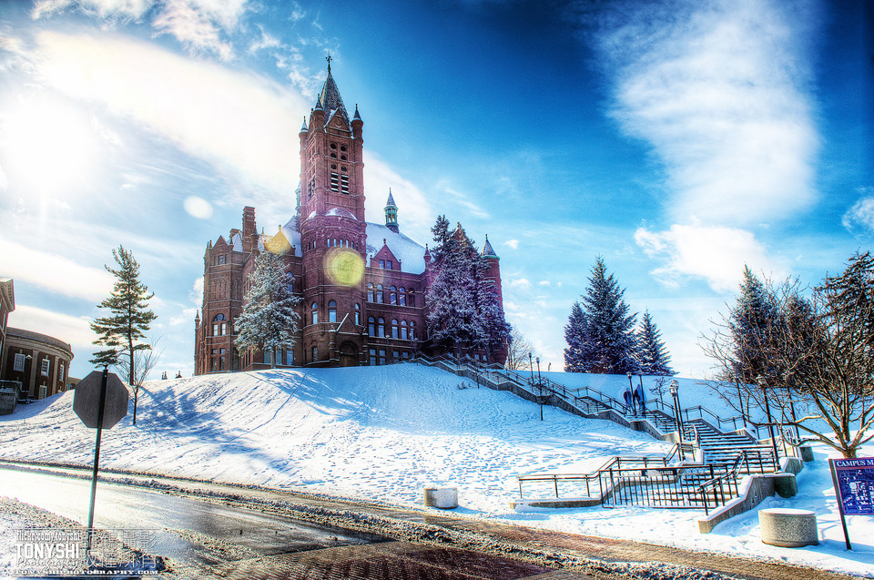 雪城大学Syracuse University是美国一所私立综合性研究型一流大学,是美国国家一级研究型大学,该校成立于1870年,位于美国纽约州中部的锡拉丘兹,素有CENTRAL NEW YORK之称,治安良好,环境优美,湖光山色,是十分美丽的都市。属于大陆型气候,四季分明,"逢春飘花,临夏荫浓,城秋枫红,瑞雪隆冬"是最佳写照。因受湖区气候效应的影响,锡拉丘兹在美国以降雪量丰富著称,因此Syracuse University又被美国人亲切地称为雪城大学,这便是" 雪城大学" 名称的由来。