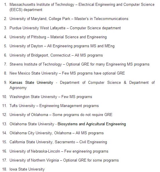 下面是在某种条件下(比如本科成绩非常突出的情况)可以豁免GRE的学校。