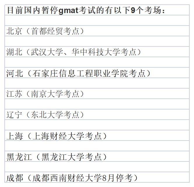 2021年8月份GMAT考位信息已出,留学美国网小编给大家整理了8-10月份考位信息,需要参加明年这两个月考试的学员可以提前了解。因为疫情的反弹,国内的部分GMAT考场开始停考,留学美国网根据日前的最新信息为大家整理了目前已经暂停GMAT考试的考场有哪些以及还有哪些考场目前有剩余考位。