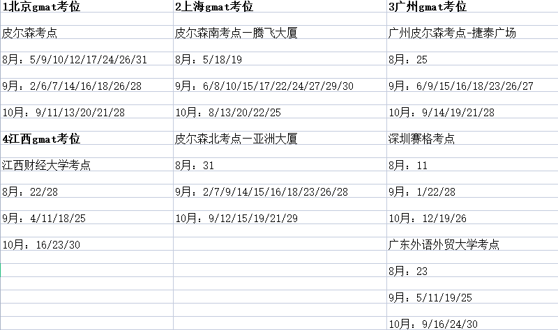 关于2021年8-10月GMAT考位信息就为大家介绍到这里了,考位信息会时时变化更新,大家要以官网为主哦~